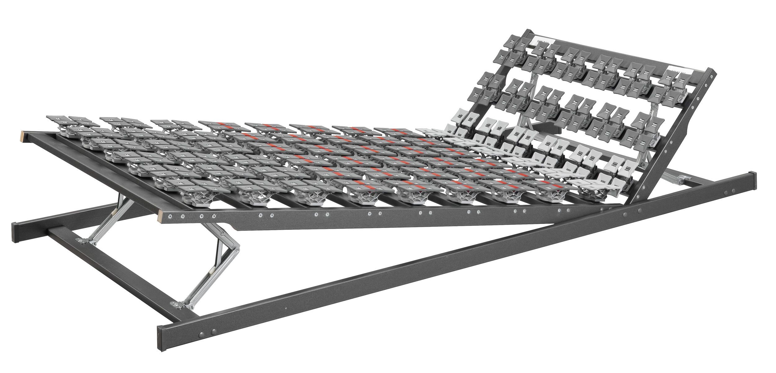 - Kopf- und Fußteil jeweils durch feinrasterige, korrosionsgeschützte Scherenscharniere fast stufenlos