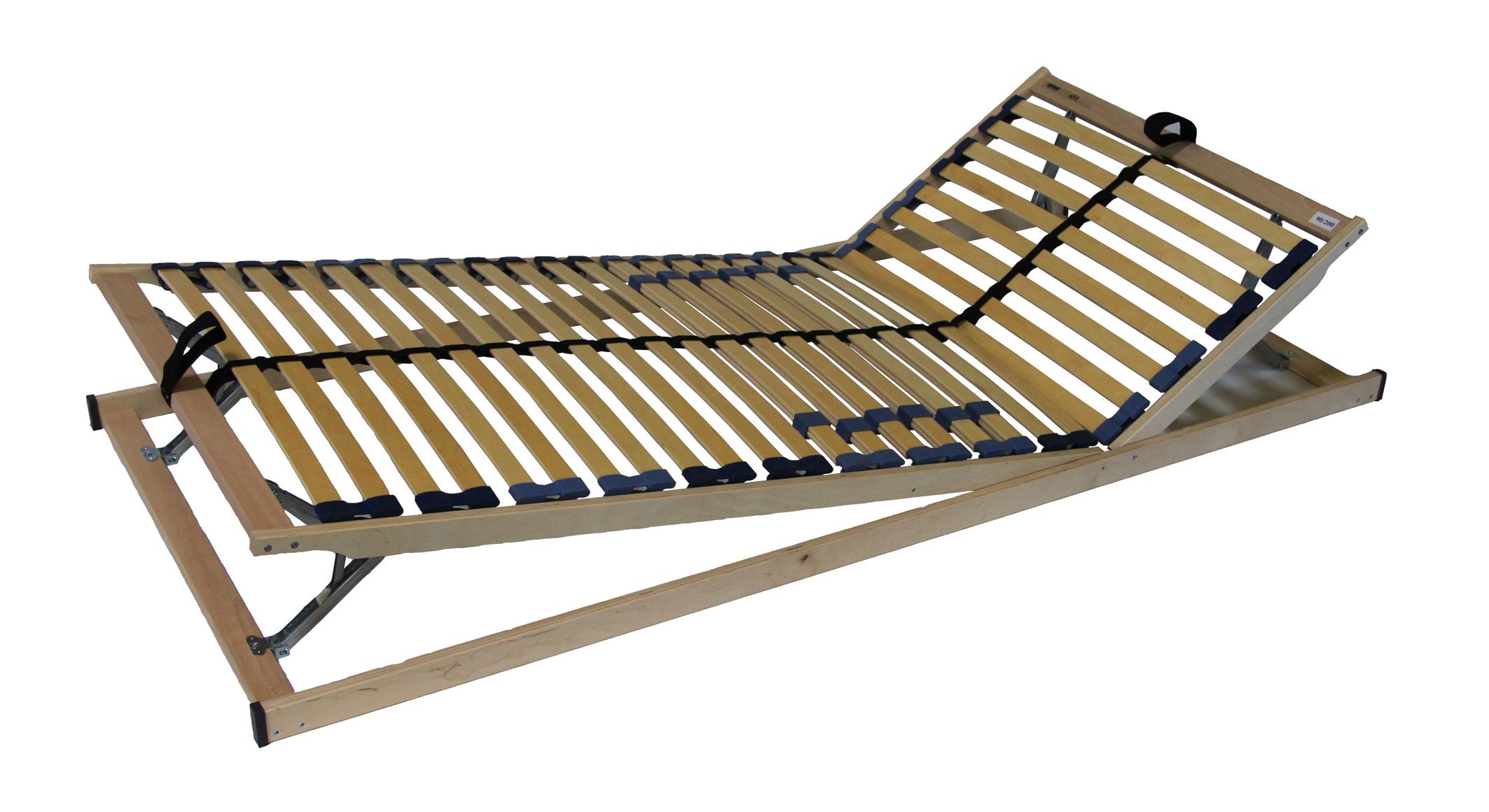 Massiv-/Schichtholz - Kopf- und Fußteil jeweils durch feinrasterige, korrosionsgeschützte Scherenscharniere fast stufenlos verstellbar