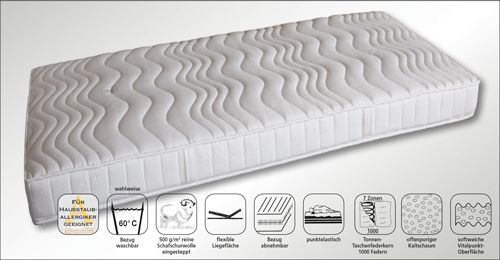 Besonders komfortable Tonnentaschenfederkernmatratze mit ca. 1000 Federn (bei 100/200) + anspruchsvoller Vitalpunkt-Kaltschaumabdeckung.
